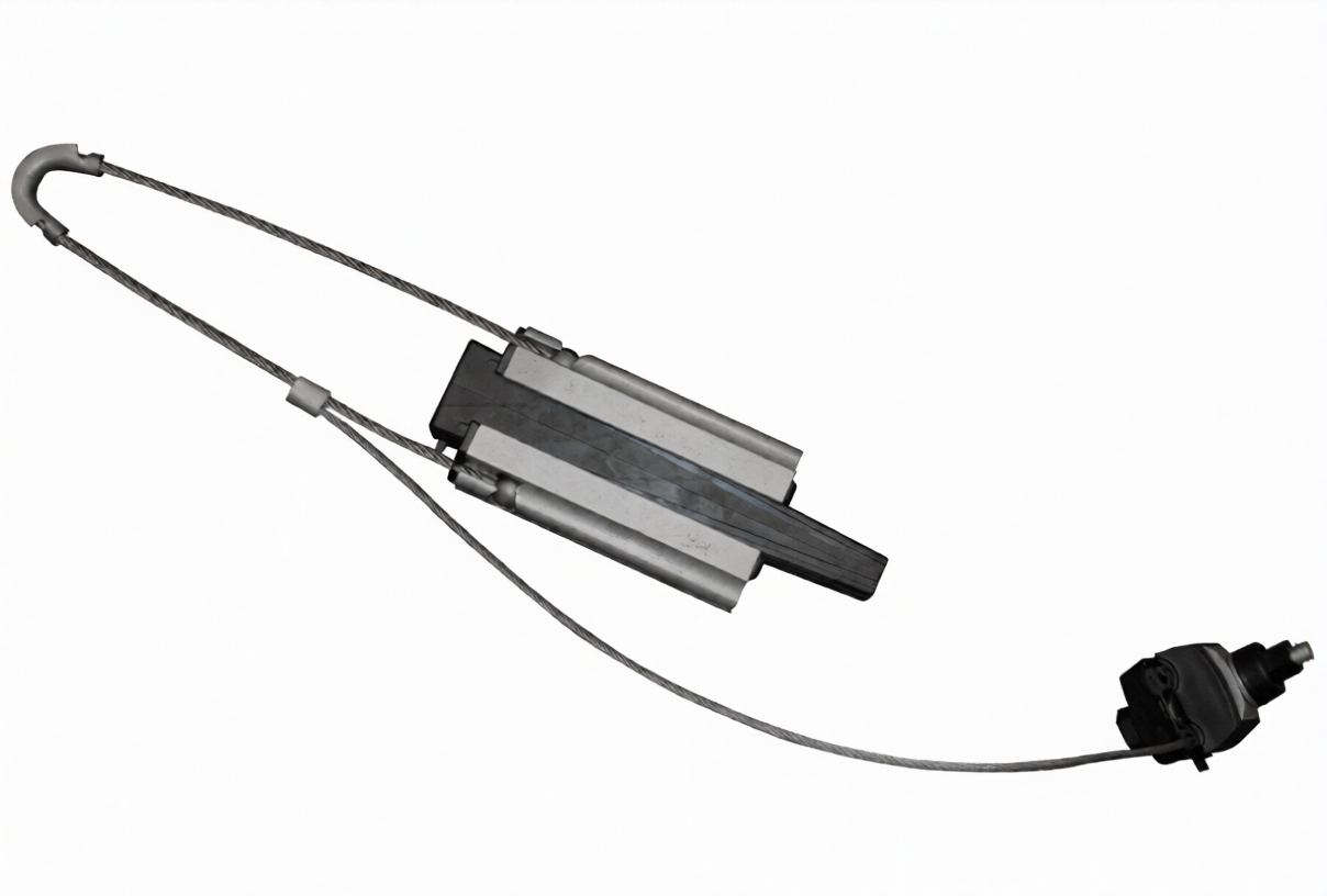 Предназначен для крепления защищенных проводов СИП-3 к натяжным изолирующим подвескам анкерных, анкерно-угловых и концевых опор. Не создает потерь на перемагничивание. Не требует снятия изоляции с провода в месте установки. Производится по ТУ 3449-001-52819896-2017.