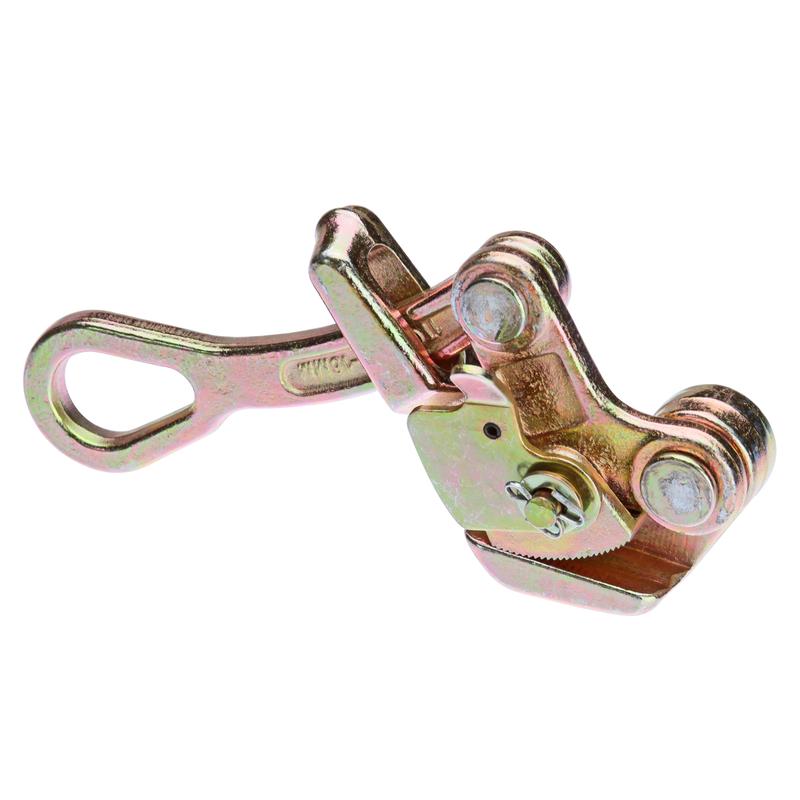 Применяются при регулировке стрелы провеса на линиях СИП путем захвата за несущую жилу. Могут использоваться при работах с оптоволоконным кабелем. Рычажное устройство преобразует усилие тяги в усилие захвата. Тяговые зажимы при работе не повреждают изоляцию провода