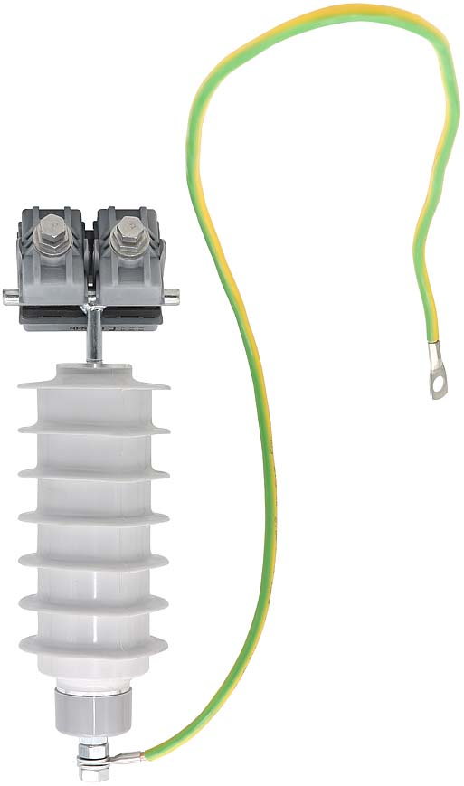 УЗИП-10 предназначено для защиты линии от импульсных перенапряжений. Нелинейный ограничитель перенапряжений, состоящий из необходимого количества варисторов, после превышения установленного порога напряжения за счет снижения собственного сопротивления сбрасывает импульс на заземленные части опор. Тем самым предотвращается разрушение защитной изоляции проводов. Установка выполняется с помощью ответвительных зажимов RPN 150. Выход с ОПН шунтом подключается к заземленной траверсе опоры.- Модель: УЗИП-10 кВ