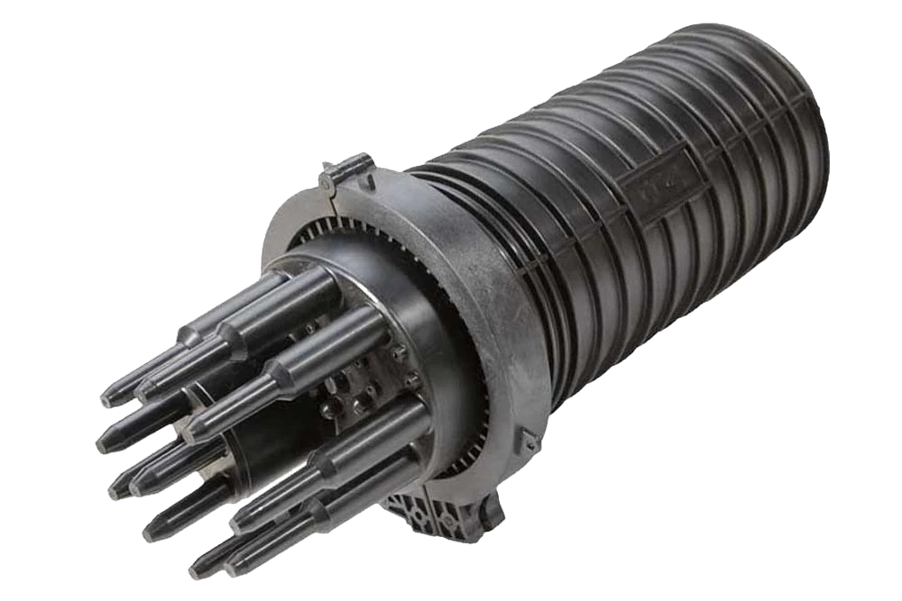 Способ герметизации вводов кабелей, осуществляется с помощью термоусаживаемых трубок ТУТ. Круглые патрубки на оголовнике муфты изначально герметичны и имеют ступенчатую форму с разными диаметрами. Срезая патрубок в определенном месте можно подобрать отверстие максимально близкое к диаметру вводимого кабеля. Таким образом, исключается излишнее натяжение ТУТ после усадки при вводе относительно тонких кабелей. Все патрубки муфты оснащены также индивидуальными узлами крепления ЦСЭ.